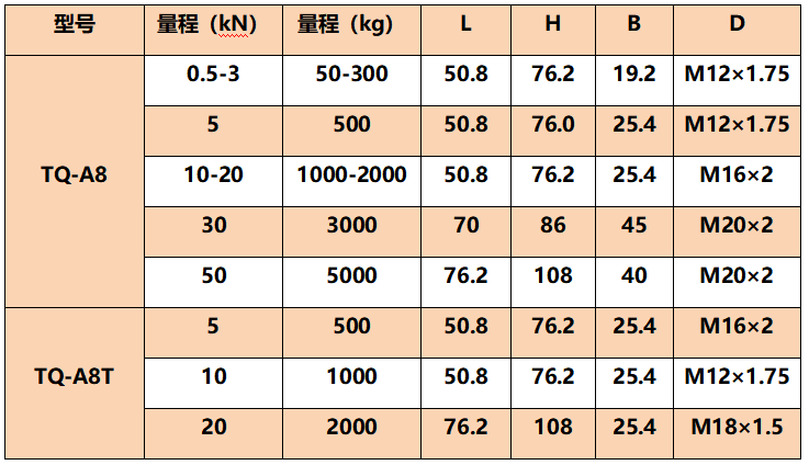 量程:500N(50kg)、 1 kN(100kg)、2 kN(200kg)、3 kN(300kg)、5 kN(500kg)、10 kN(1t)、15KN(1.5t) 、20 kN(2t)、30 kN(3t)、50 kN(5t)