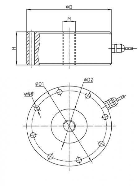 型號 | 量程(kN) | 量程(t) | D | D1 | D2 | H | M | Φ |