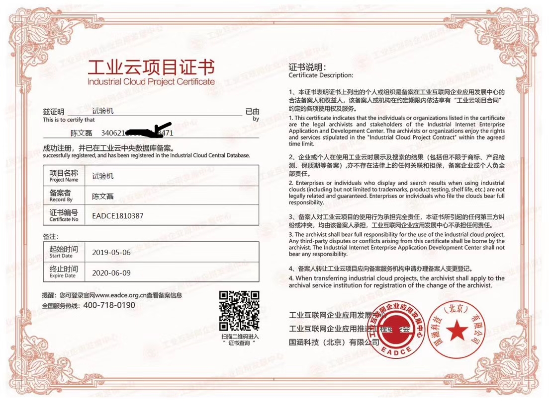 國(guó)家商務(wù)部工業(yè)云項(xiàng)目證書(shū) 工業(yè)互聯(lián)網(wǎng)企業(yè)應(yīng)用發(fā)展中心